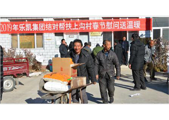 1月25日,新春佳節(jié)到來之際,中國樂凱集團扶貧辦組織集團公司定點扶貧淶源縣成員單位到淶源縣開展春節(jié)前慰問活動,給上溝村、五節(jié)崖村村民送上生活用品和節(jié)日的祝福